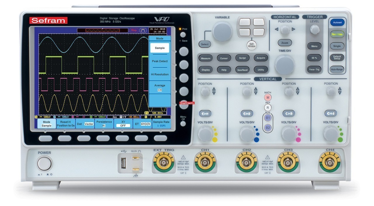 Количество каналов: 2 (+ вход внеш. синхр EXT) Полоса пропускания: 500 МГц Максимальная частота дискретизации: 4 ГГц ; эквивалентная 100 ГГц Объем памяти 25 К (на канал)